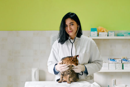 Veterinarian examining a cat in a veterinary clinic, toned
