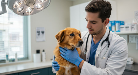 A veterinarian examining a dog in a clinic, providing expert care for the animal