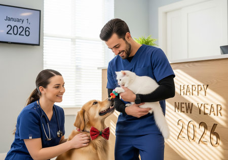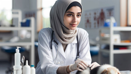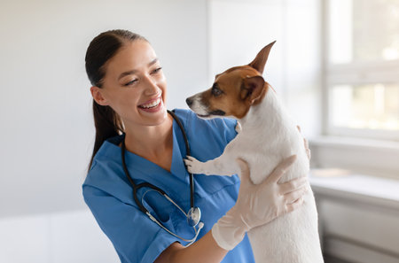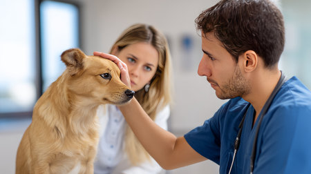 Veterinarian cares for a dog during a routine checkup in a clinic