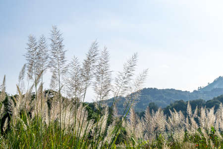 Under the blue sky, a reed Bush under the mountain