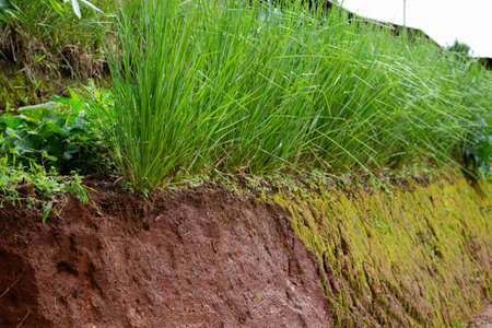 The root of Vetiver Grass in the ground