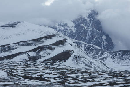 Close up of mountain Mountains covered in snow during a cloudy day, Isparta Region, Turkey 2022