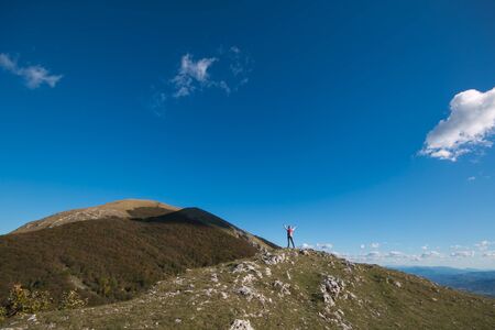 Beautiful italian landscape with hills and mountains on a sunny day (Marche, Italy, Europe)
