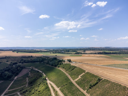 Hills with vineyards near Urville, champagne vineyards in Cote des Bar, Aube, south of Champange, France