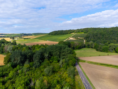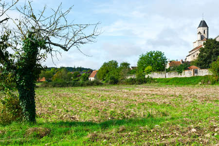 Countryside with fields and farms, in Cote dOr, Burgundy, France