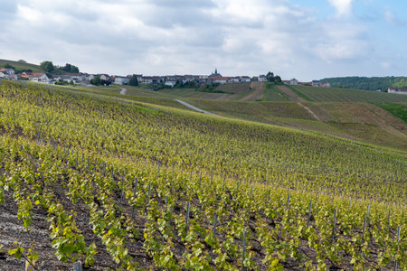 Villedommange France - View of Champagne vineyards under a cloudy sky in the afternoon