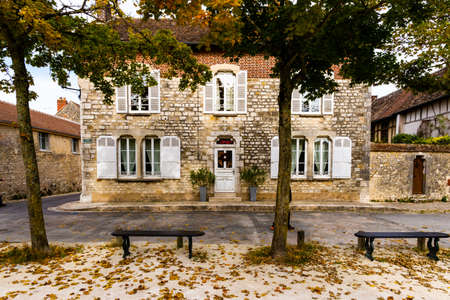 Provins, France - October 17, 2021: A typical stone house in an historic district located in a small town near Paris. Taken on a partly sunny autumn afternoon