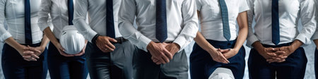 The close up picture of the group of the engineer with hardhat and standing next to the each other, the engineer require skill like technical experience, management and the communication skill. AIG43.