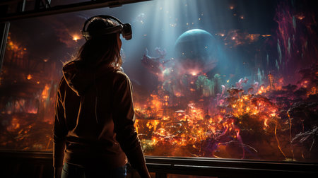People experiencing immersive virtual reality in digital world