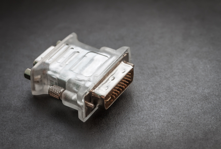 Close-up of vga and dvi adapters used for pc to monitor connection on white background .