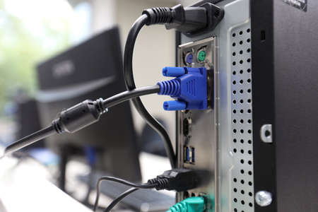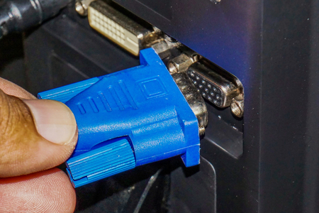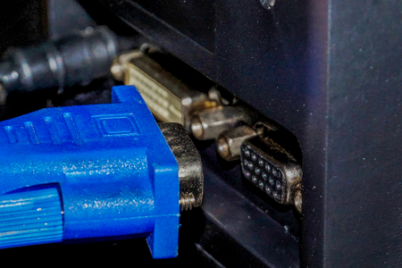 Blue VGA (Video Graphics Array) connector and cable used to transfer analog signal. This cable is often used to connect between the computer and monitor.