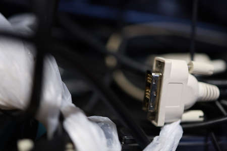 Close-up of a computer cable connector. Macro photo. High quality photo