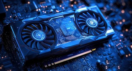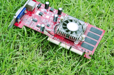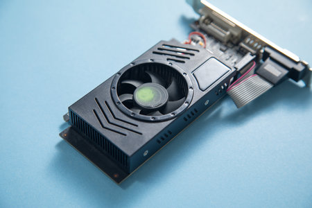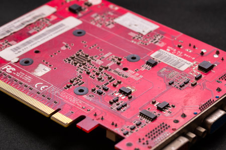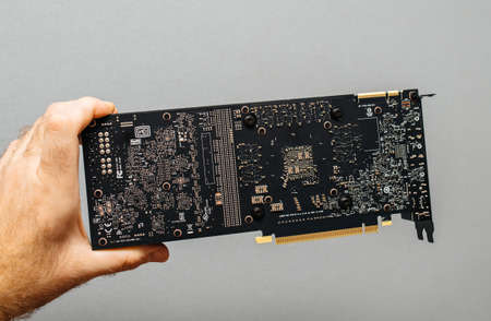 Graphics card chip and circuits. Gaming graphics card for video games and cryptocurrency mining