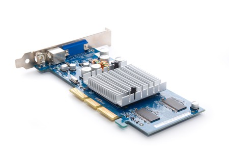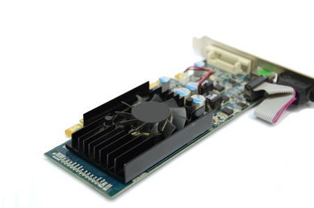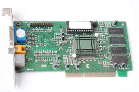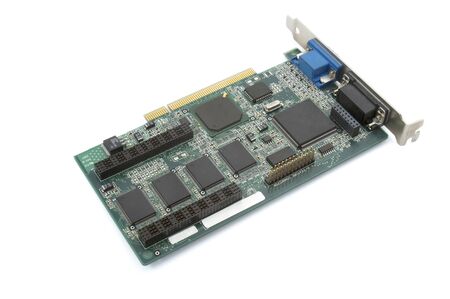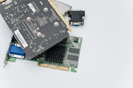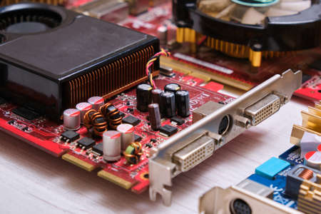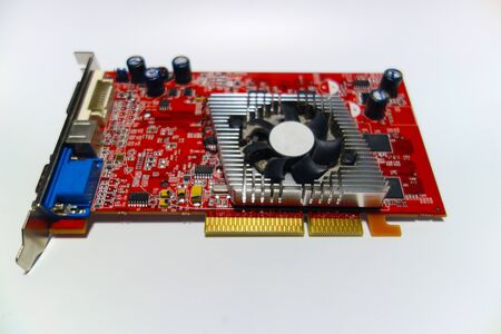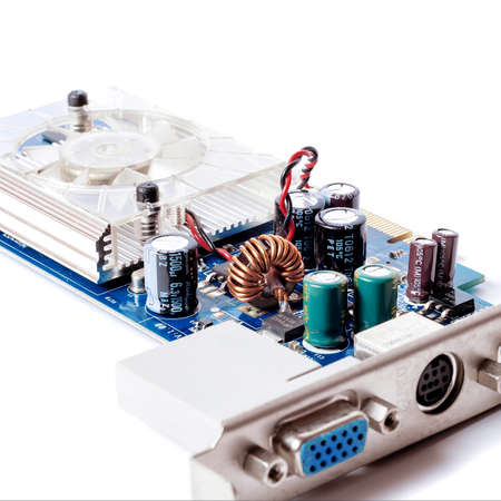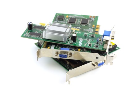 Video cards, electronic circuit, computer component, boards, isolated on white background, copy space, electronics, connecting cables, close-up