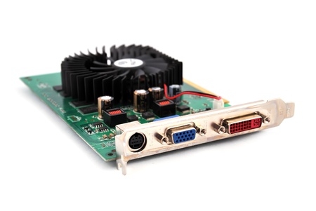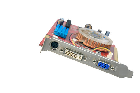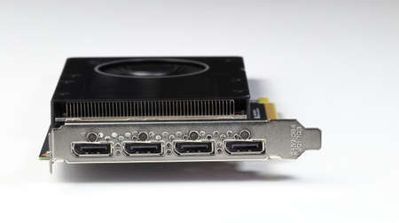 Display ports on Professional video graphic card, High performance video graphic card for workstation computer isolated on white,
