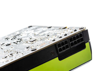 Professioinal PC gaming GPU, detail of 6 Pin and 8 Pin Power Connector, visible circuit board