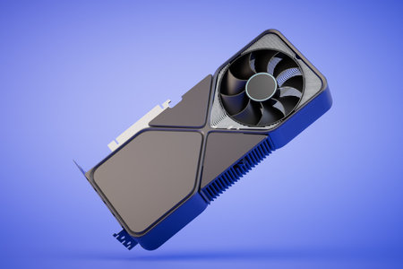 The Latest Video Graphics Adapter: VGA Card with PCI Express x16 and Aluminium Heat Sink on Yellow Background - A Silent Cooler for Bandung, Indonesia [July 11, 2022]