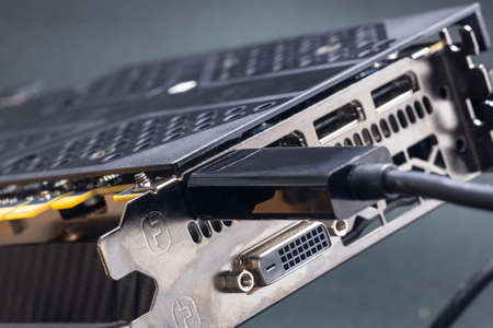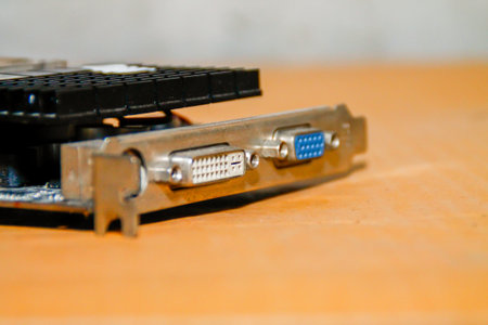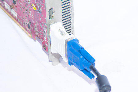 Close-up of DVI connector on GPU (graphio proccesor unit)