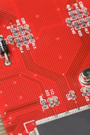 electronic circuit. Electronic printed circuit board. Part of the motherboard of a desktop computer, laptop, radio elements.