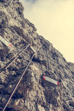 One of the most famous via ferratas in the world. The via ferrata on Donnerkogel in Austria. A ladder to the other side of the mountain. extreme