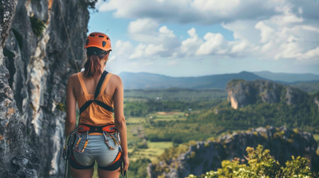Person participating in an outdoor recreational activity such as rock climbing with scenic nature landscapes in the background