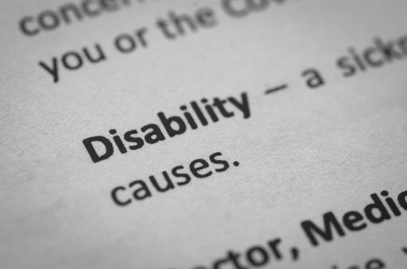 A close-up, selective focus on the word Disability in a legal or medical document, highlighting its critical importance in official contexts.