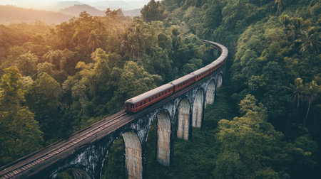 Captivating Aerial Perspective: A Majestic Train Crossing the Enchanting Nine Arch Bridge in Badulla, Sri Lanka