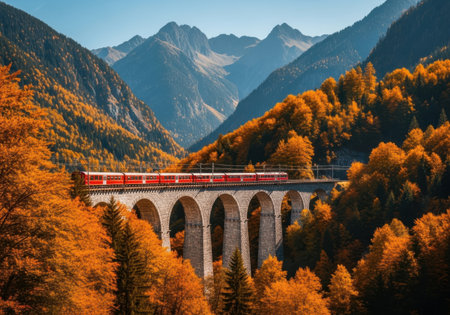 Railway viaduct in the Swiss Alps at autumn, Switzerland