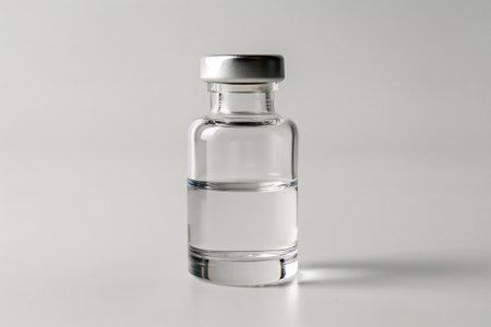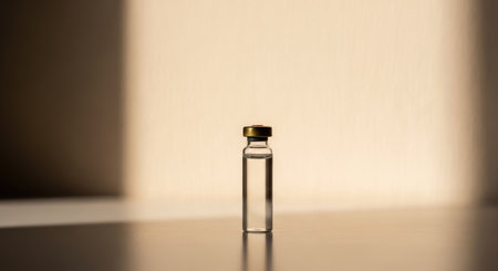 Sleek glass vials with metallic caps rest on a mirror-like surface, their pristine transparency embodying cleanliness and precision in medical and pharmaceutical environm