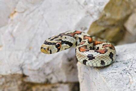 Leopard Snake - Zamenis situla, beautiful colored snake from South European rocks and bushes, Pag island, Croatia.