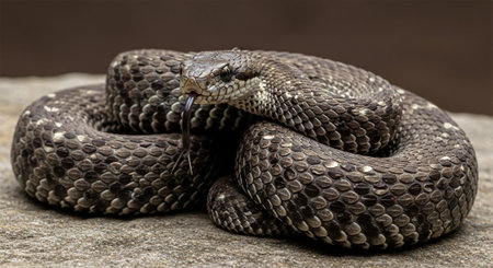 Western diamondback rattlesnake (Crotalus atrox) ready to strike; Magnum, Oklahoma, United States of America. AI Generated.