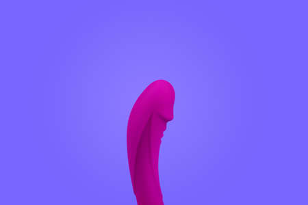 Vibrator on a purple background, copy space. Female vibrator, the concept of sex pleasure. Pink Adult Sex Toy.
