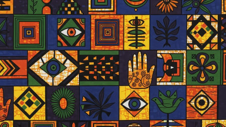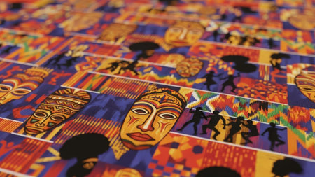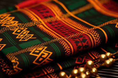 macro shot of kwanzaa-inspired patterned cloth, created with generative ai