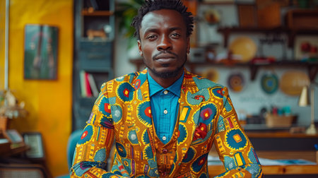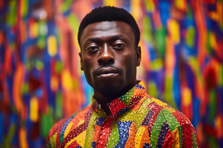 Vibrant Afro american bright shirt. Summer model person. Generate Ai