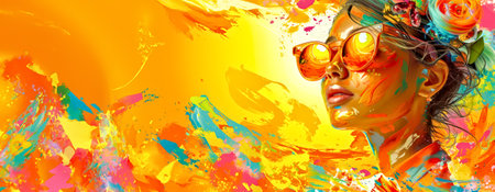 Vibrant Summer Digital Art Portrait Woman in orange sunglasses with painted spashes