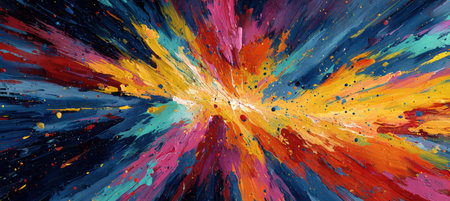 A stunning abstract painting showcasing vibrant colors and bold brushstrokes. The dynamic composition bursts with energy, perfect for artistic inspiration and d