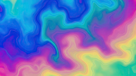 A dynamic abstract background featuring swirling liquid patterns in vibrant neon colors including blue, pink, orange, and yellow, with a smooth,...