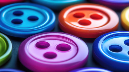 This vibrant close-up image showcases a variety of shiny buttons in a beautiful spectrum of colors, perfect for inspiring creativity in crafting and sewing projects.