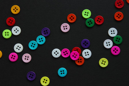 A playful arrangement of colorful buttons on a dark textured background, perfect for showcasing creativity and craft projects. Ideal for DIY inspirations.
