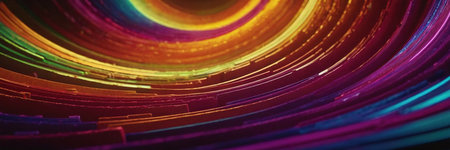 Experience the captivating allure of this colorful abstract swirl artwork, featuring vibrant circles and radiant light effects that create a sense of dynamic motion.