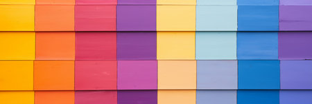 Explore a captivating display of colorful paper sheets arranged in a seamless gradient, perfect for design projects, artistic endeavors, and crafting inspiration.