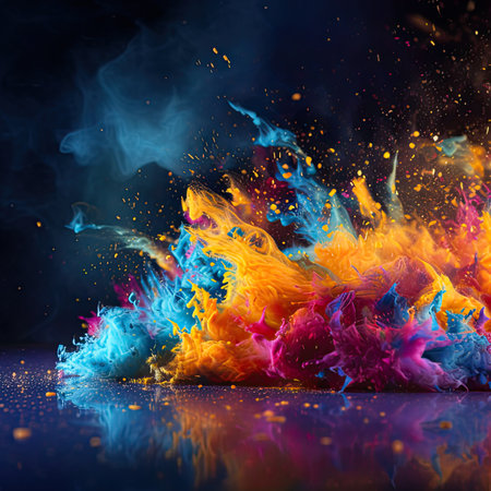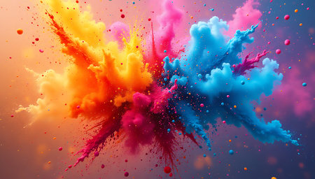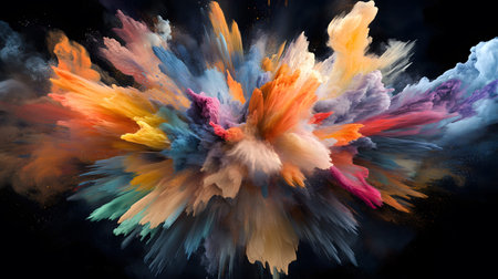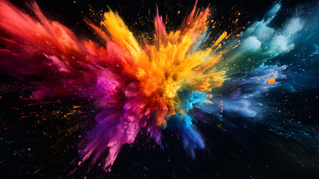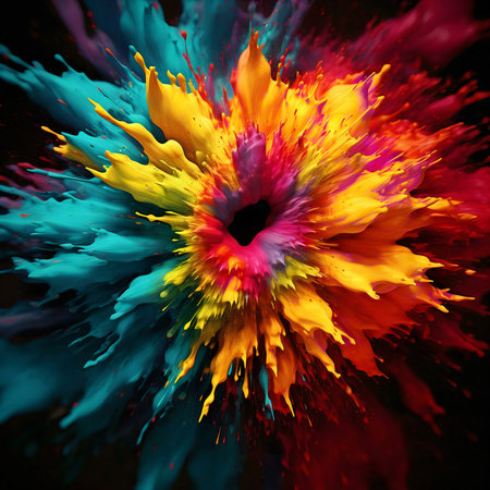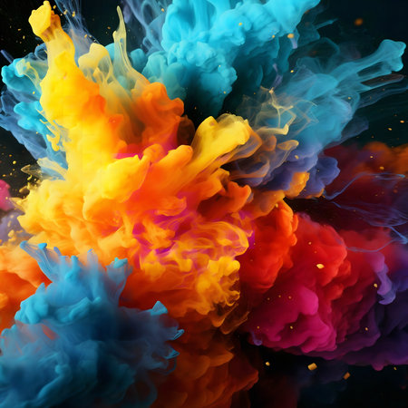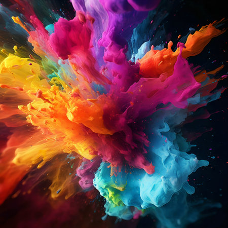 Vibrant colorful paint explosion against a dark background
