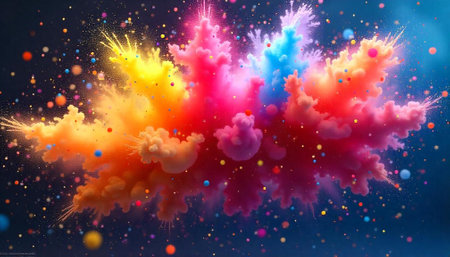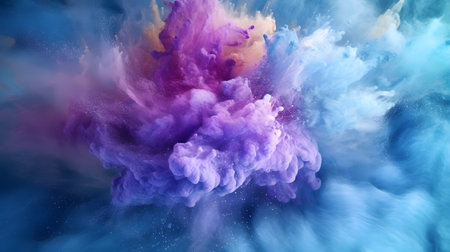 Colorful powder explosion against a dark blue background