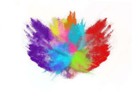 Explosion of colored powder isolated on white background. Abstract colored background