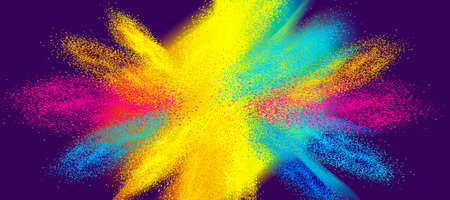 Explosion of colored powder abstract colored background. Multicolor splash of particles festival of colors powder burst exploding and splashing powder. Holy festival.