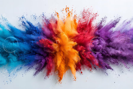 A colorful explosion of powdered paint, in a white studio, shot with a high-speed camera, creating a dynamic burst of energy