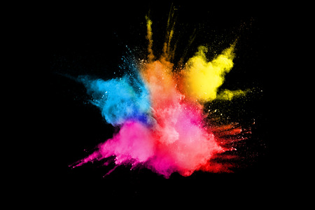 Explosion of colored powder isolated on black background. Abstract colored background