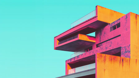 Vibrant Architectural Design: A striking image of a modern building with bold pink and orange hues against a clear blue sky. The unique architectural design is eye-catching and stylish.