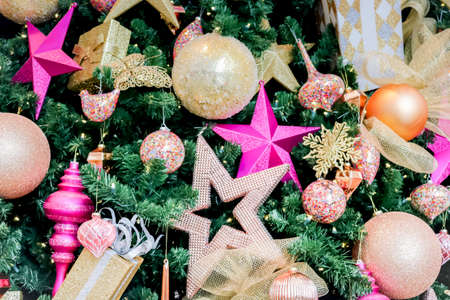 Close up of the colorful Christmas decorations used to decorate the Christmas tree in December