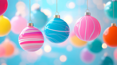 Vibrant Pastel Christmas Ornaments with Festive Background Bokeh.